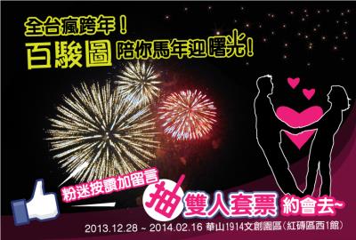 全台瘋跨年!今年你最想和誰一起迎接馬年曙光呢? 百駿圖現在要送你繪動的百駿圖雙人套票喔! 快按讚加入繪動的百駿圖FB粉絲團 並依據說明完成活動,就有機會趕在馬年拿到雙人票兒約會去囉!