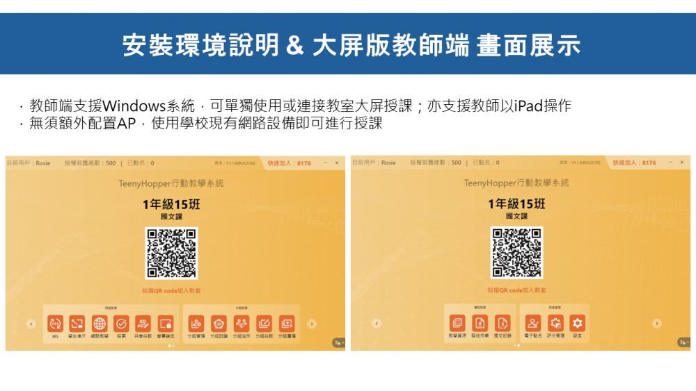 TeenyHopper 設計考量學校無線網路基礎設施,無須額外硬體即可實現跨網段通訊及雲端部署。此外,架構設計讓老師可靈活運用觸控大屏、班級電腦或 iPad 教師端,與全班學生 iPad 互動教學。