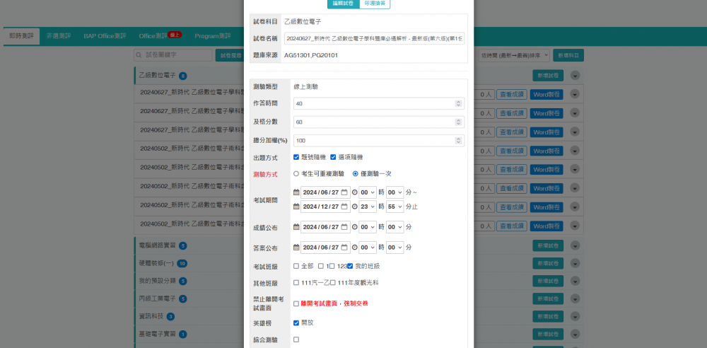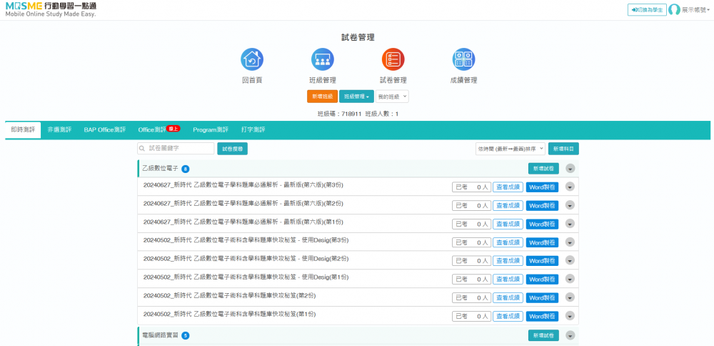 3.可線上製作試卷,讓同學線上練習/考試,亦可將試卷轉成Word印成紙本做測驗