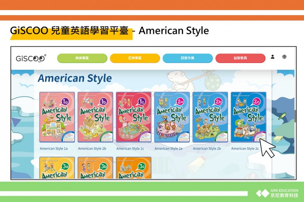 American Style線上課程設計依兒童的生活經驗為主軸,分成3個Level,提供沉浸式的英語學習體驗。課程為美式發音和主題情境對話設計,通過214組生活情境對話和36個多元學習主題,讓學生在真實的語境中學習和應用英語。並通過360個常見單字和214組語法句型,強化學生的語言基礎,讓學生即學即用。外籍師資影音教學,讓孩子身歷其境。角色扮演活潑有趣,提高學習成效。美加外師對話影音教學,強化英語表達的流暢度,提升兒童說英語的信心
