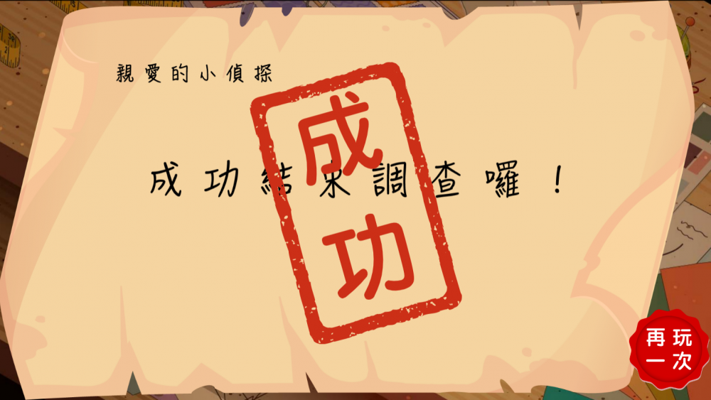學生玩完符合五年級課程的神祕調查局<<服裝店篇>>,透過網路資源,自行google找到三年級的<<教室篇>>,破關後還直問是否有第三篇,十分有趣的經驗~