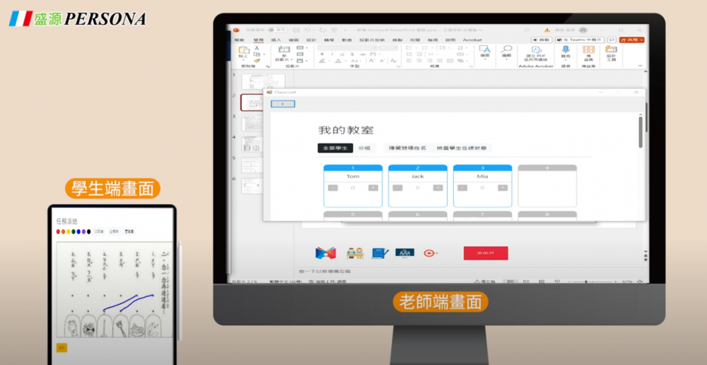 盛源Class Craft是一款即時教學互動系統,它可以讓老師在課堂上輕鬆地進行即時的任務派送,並且即時收到反饋,清楚知道學生學習進度,可以立即調整教學的進度。學生可以使用任何行動裝置掃描QR CODE加入課堂,老師可以依照需求進行分組,也可以課堂直接抽籤學生回答。