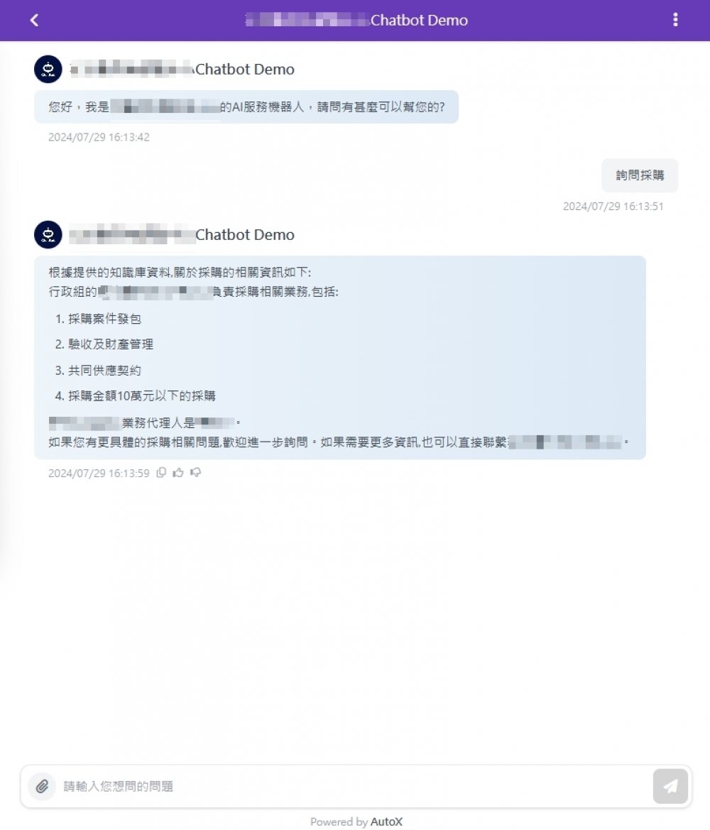 並可透過 LLM+RAG 建立專屬知識庫、智慧客服問答系統、AI學習成效評估系統、助教機器人等,減輕及降低業務單位人力成本,解省原本需要花費的工作時間。