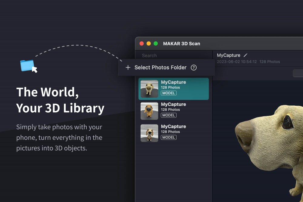 MAKAR 3D Scan掃描實體物品,快速創建3D模型!只需手機或平板,即可將周遭的物品和場景化為3D物件,無需額外設備,只需圍繞著物品拍下照片匯入其中,即可快速產出模型。