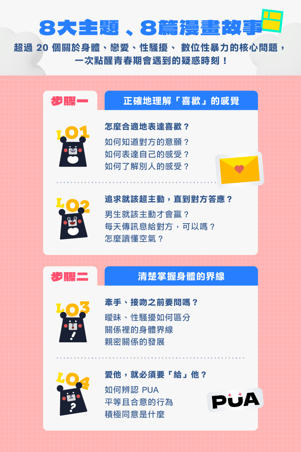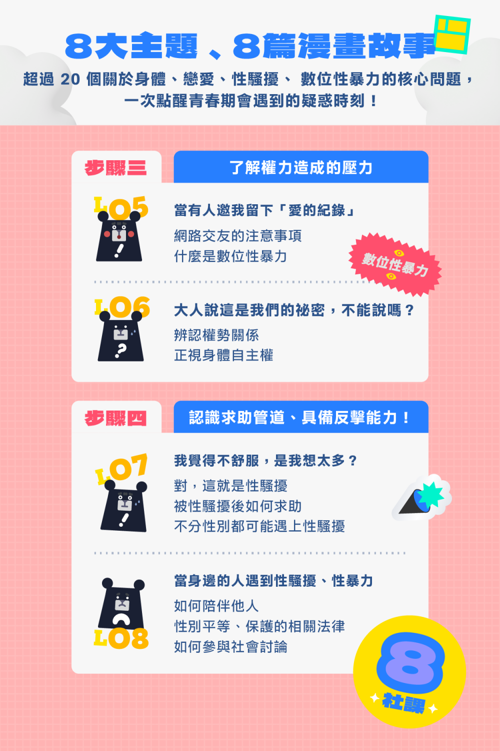 這是一堂為青春期的孩子整理關於:身體界線、情感意識、自我保護知識的課程。接住情竇初開的好奇心,更突破開口談性教育的害羞尷尬,才能學習正確的處理、求助方式!