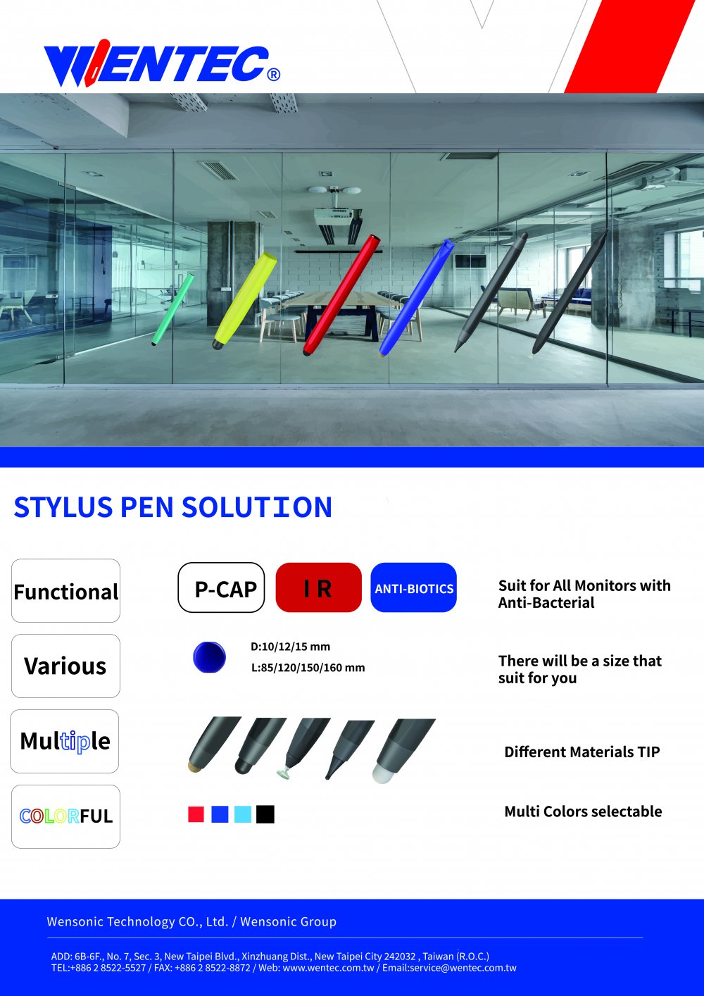 1. 抗菌觸控筆- 用於觸控大屏電視及平板電腦, 手機, 多種筆頭材質與尺寸選擇, 免充電設計, 管理維護簡便