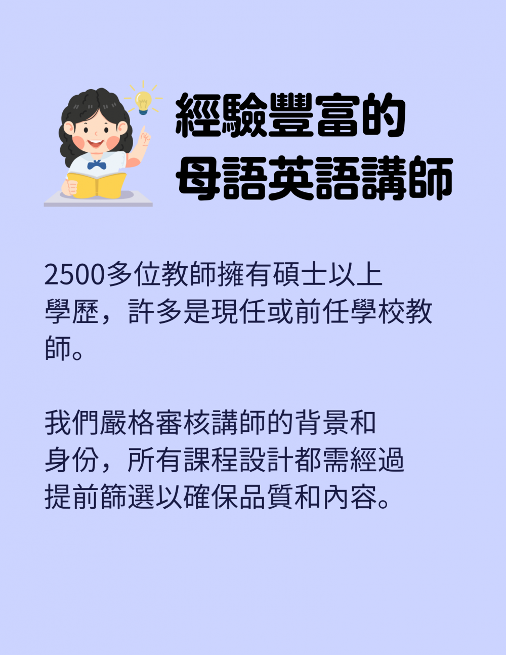 總部位於美國舊金山,是美國最大的線上學習平台,也是在家自學的首選教育平台,專為3-18歲的學生設計,透過各種主題、專業教師設計的課程,按照自己的方式學習,滿足孩子的興趣,且激發孩子對學習的熱忱。我們提供多種教學形式,包括一對一家教(One on one) 、有趣且互動多的小班制直播課程 (live online meeting)、可以隨時參加的彈性預錄課程(flex),以及主題式月費制的學生社團(groups),由一位專業的老師帶領,集結來自世界各地的學生,一起圍繞著感興趣的主題,共同研究及討論。