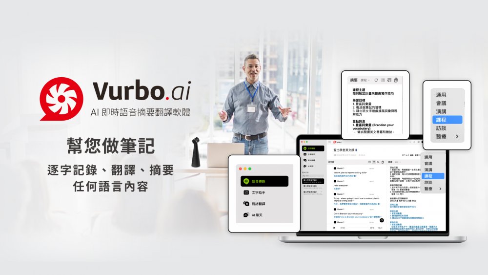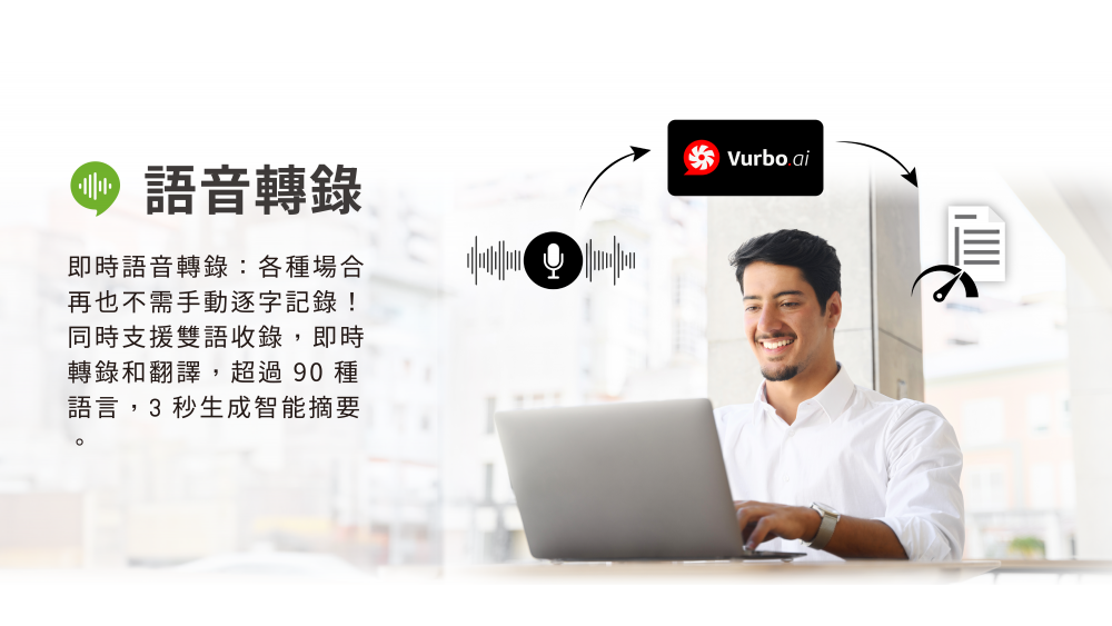 Vurbo.ai 將語音對話即時轉換為多語文字,便於顯示、分享與整理。無論是課堂講授或學習、線上研討或訪談,都能同步轉錄與即時翻譯,讓溝通便捷更高效。