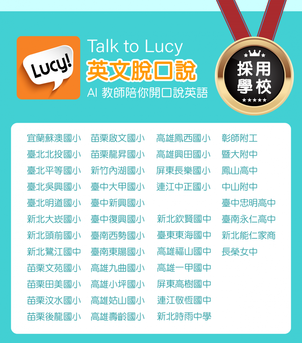 蘇澳國小採用Talk to Lucy,榮獲「教育部數位學習績優學校-特優獎」(全國只有2所獲獎學校)