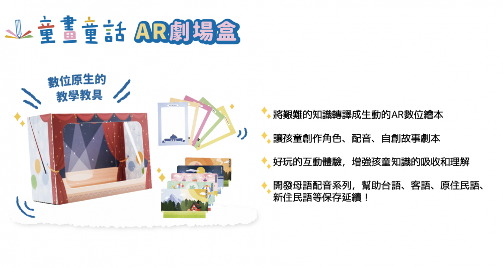以「本土語言」與「在地文化故事」打造的「AR 科技繪本」,提供獨特的閱讀體驗,培養孩童的素養能力。