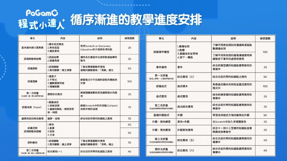 「程式小達人」旨在幫助學生克服學習程式設計時可能遇到的恐懼與困難,培養他們的運算思維與設計思考能力。課程內容以 Discovery Education 線上教材與Scratch程式語言為基礎,通過循序漸進的教學方式,讓學生從基礎邏輯開始,逐步掌握程式設計的核心技能,最終能夠獨立完成程式開發。本產品不僅強調學生的技術能力,還注重他們的創意思維與解決問題的能力,旨在為學生提供全面且實用的資訊素養。
