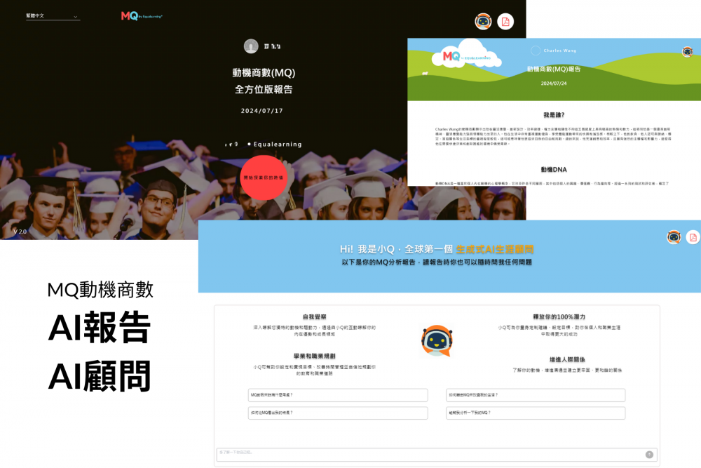 源自美國的MQ動機商數(Motivation Quotient)結合動機心理學、生成式AI與全球大數據,有世界首創的RAG(檢索增強生成)AI顧問小Q(美國專利)。