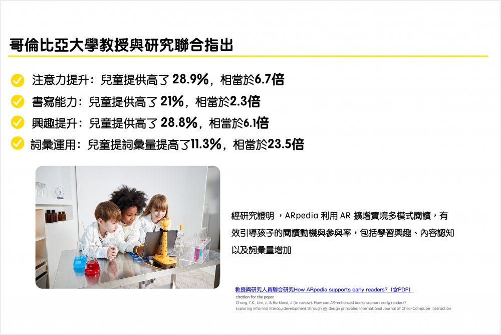 ARpedia是一款AR虛實互動式英文百科兒童繪本,結合歐美K12教學精華、韓國AR科技,打造出STEM多元系列主題5大系列、超過100+英文繪本主題,適合3~12歲孩子,除適合親子共讀也適用校園課程使用,培養孩子多元探索能力、自主學習興趣,劃時代的數位教材最佳選擇!