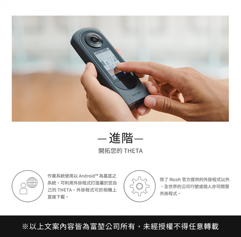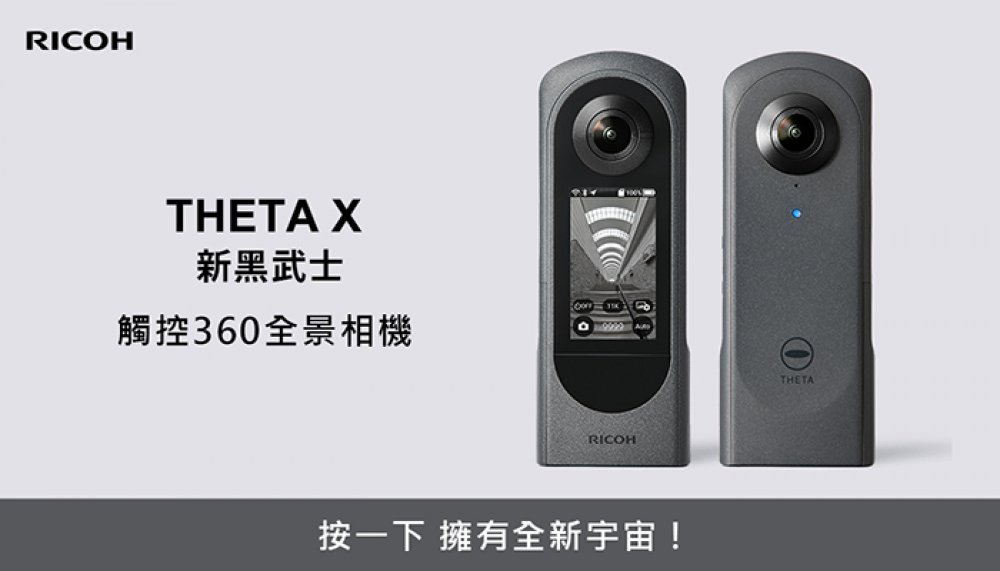 RICOH THETA X配備大型觸控螢幕,使用更加多元便利。頂級百光學技術大廠,高效處理影像暗部細節。高達5.7K動態影像,宛如親臨現場原音重現。內建6000萬畫素、GPS、支援360直播、機身僅144g,是5G新科技學習示範。