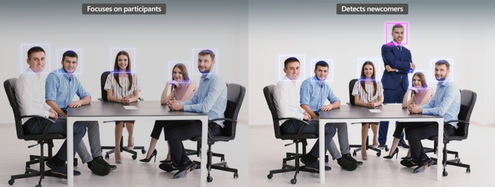 4K 雙鏡頭視訊攝影機 CAM570,搭載 36 倍總變焦鏡頭與 95 度廣角定焦鏡頭,攝影機內建聲音感測器,可偵測並追蹤十公尺內的人聲、智慧畫廊及手勢辨識等 AI 技術,捕捉與會者的一舉一動,超高清畫質忠實呈現細節。