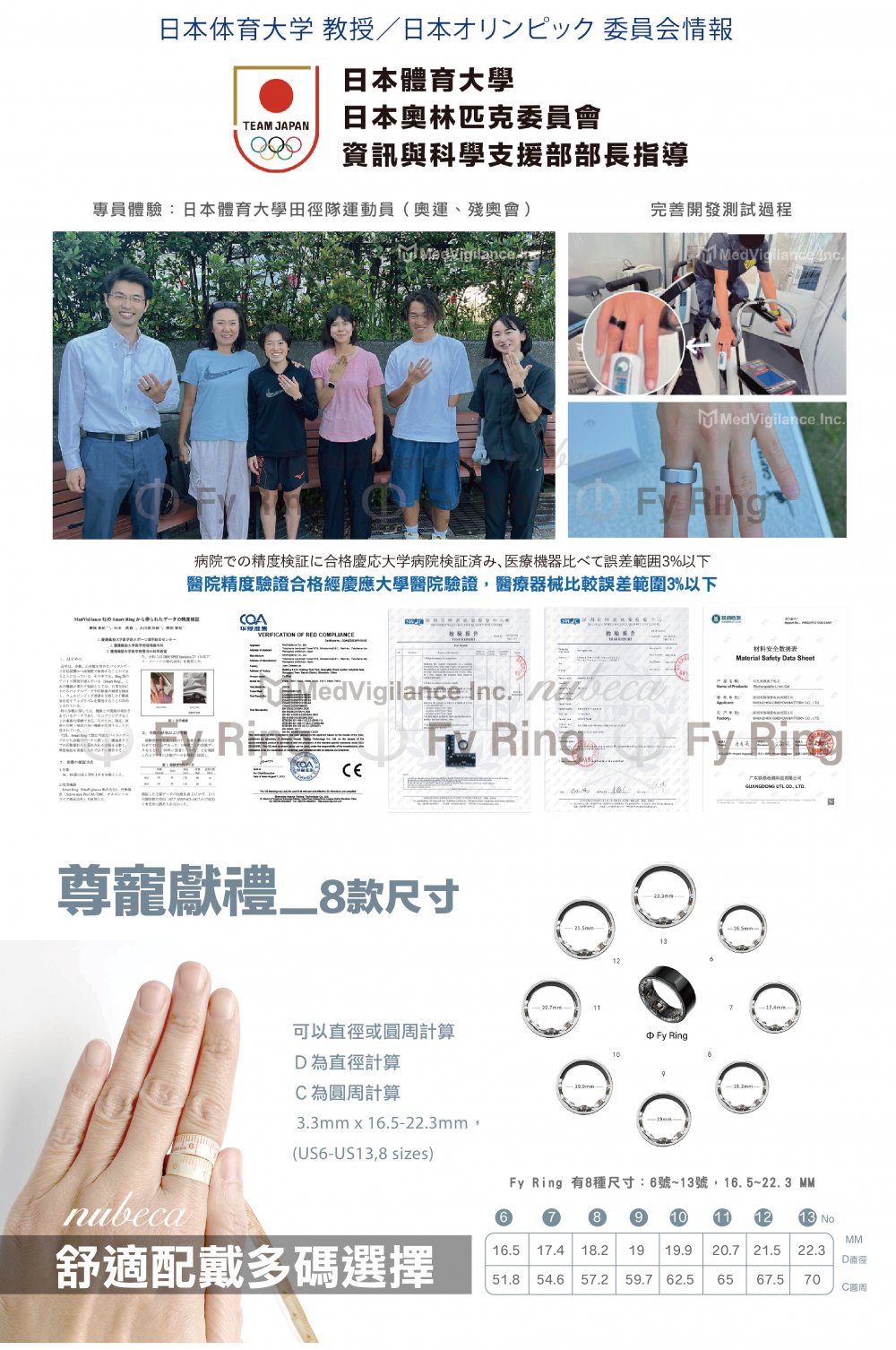 Fy Ring 由日本團隊技術研發並榮獲日本技術協會特別賞殊榮, 健康守護 | 一指掌握, 8大功能特色 。