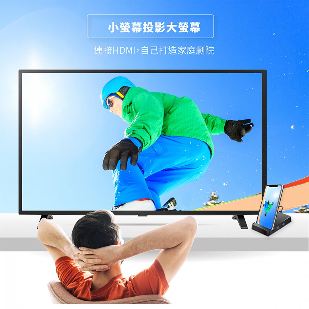 Type C/ USB-C(PD/QC)/ HDMI/ USB3.0*2/ AUX接口種類齊全的連接埠,可應用於各種情境。讓你不論在商務、教育、居家娛樂上、都能滿足。