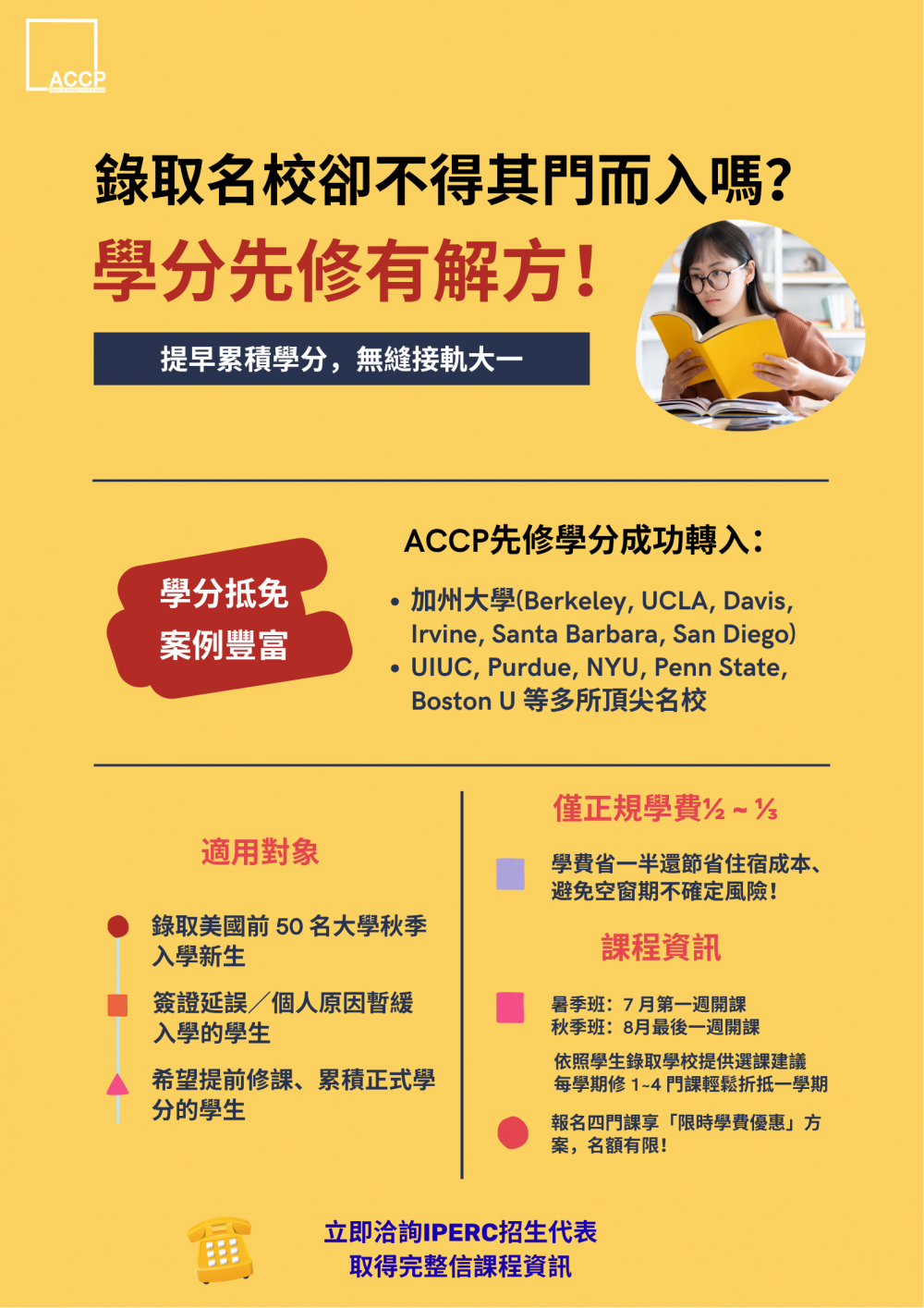 創立於2009年,是註冊在美國俄亥俄州的非盈利國際教育組織,致力於促進全球環境下有效的教育研究、創新和交流。IPERC所提供的服務及課程項目(包含留學、線上課程、競賽項目、短期遊學、STEAM課程等)已經服務超過10,000名學生; 與主要英語留學國家,如美國、英國、加拿大等,穩定合作中學、大學超過150所。其中中學獨家代理20多所,與13所大學成立了ACCP聯盟,打造獨特升學路徑。