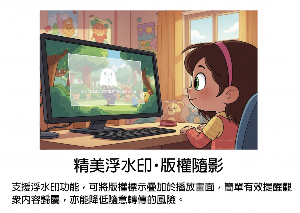 ‧六大技術:防盜拷、防側錄、時限管理、權限管理、浮水印、防刪防毒USB