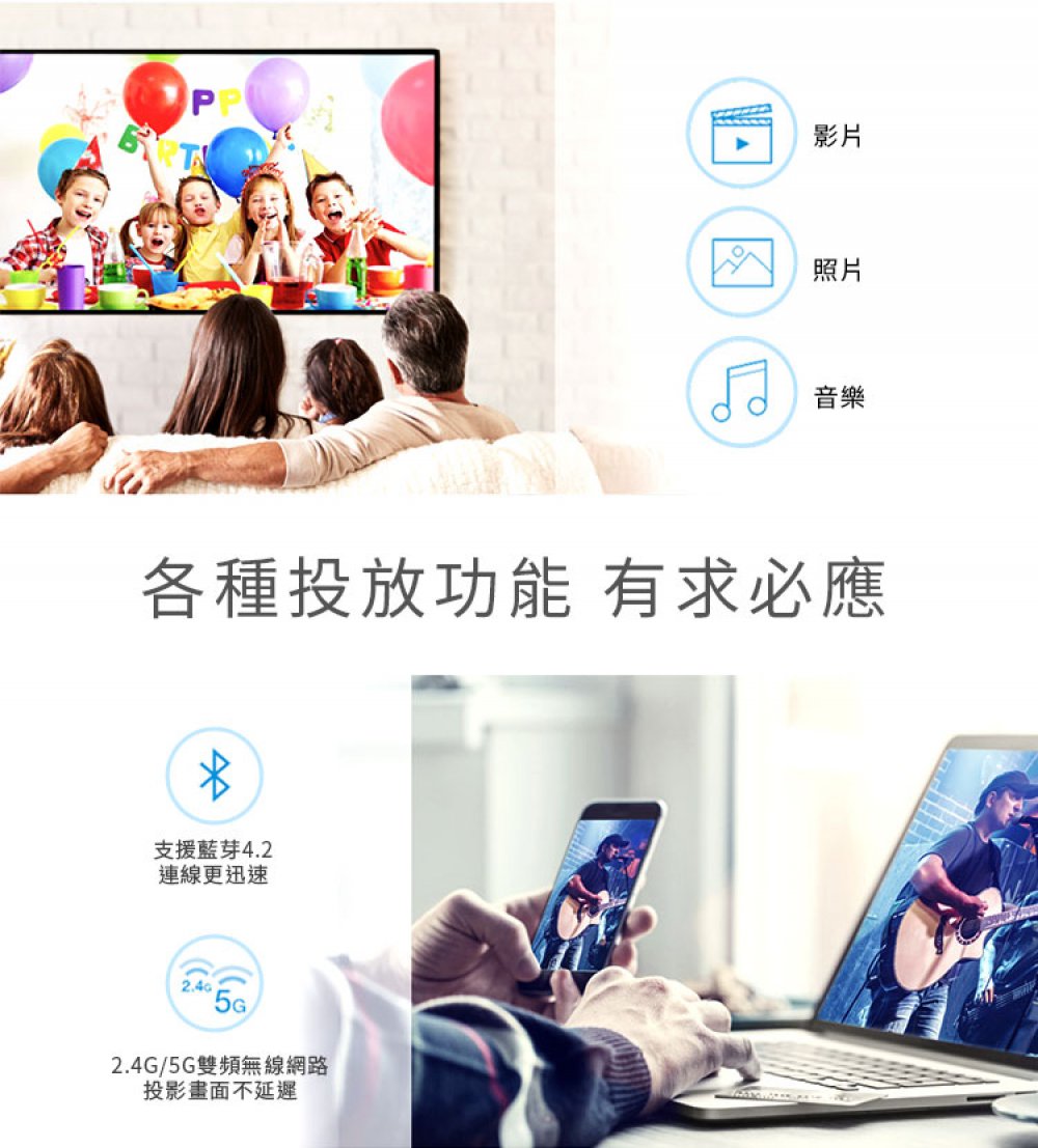 Wi-Fi 5G/2.4G,畫面不延遲。