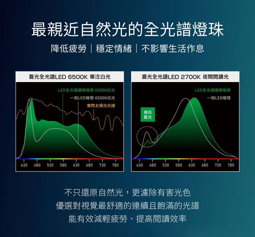 ✔全光譜LED燈珠,光線接近自然光,長時間使用不疲勞