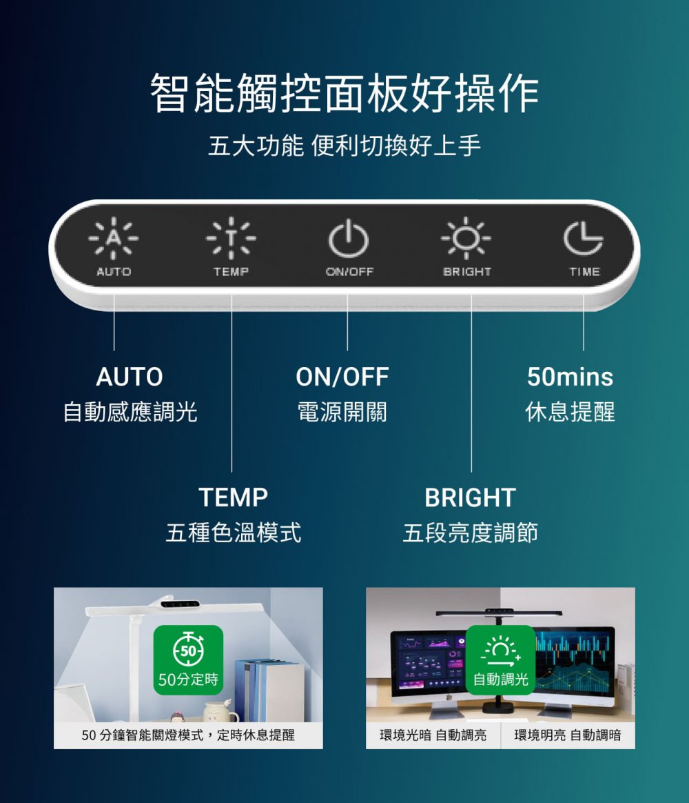✔智能調光/休息提醒/專注模式,幫助維持最佳學習狀態