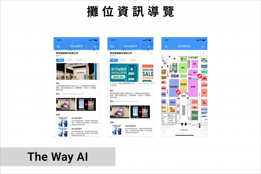 我 們 聚 焦 於 校 園 、 醫 院 、 展 覽 館 、 百 貨 商 場 等 複 雜 建 築 空 間 , 提 供 使 用 者 直 覺 、 即 時 且 不 依 賴 額 外 硬 體 設 備 的 導 航 解 決 方 案 ,我 們 的 導 引 技 術 完 全 不 依 賴 藍 牙 或 Wi-Fi 定 位 , 改 以 視 覺 定 位 或 模 擬 動 線 演 算 法 進 行 路 徑 計 算 。