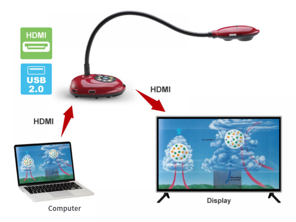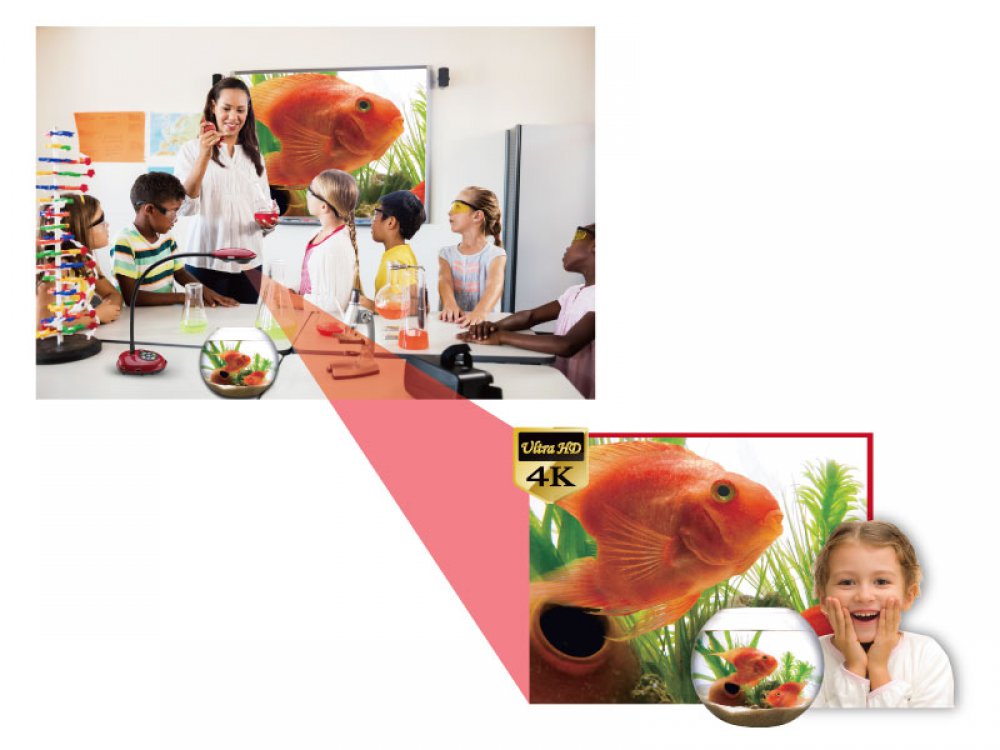 專業的 20 倍光學放大效率,配備VGA 及HDMI 輸入/輸出