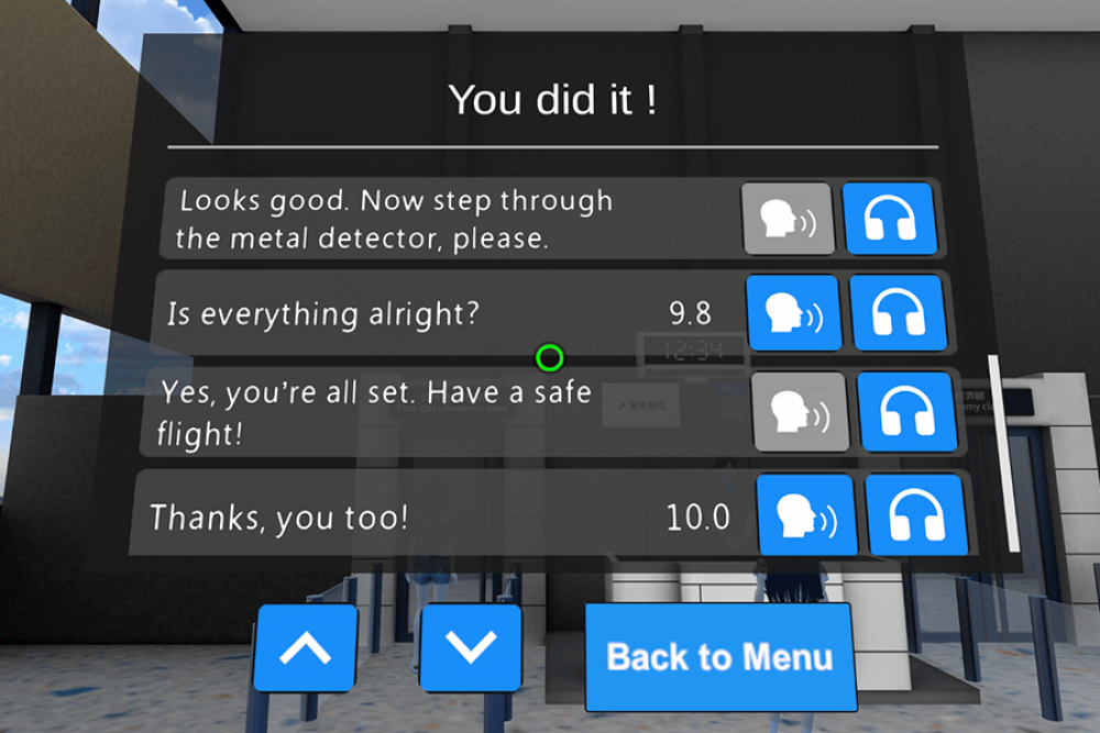 XRELS 是專為英語口說打造的 VR 頭盔,透過沉浸式情境模擬與角色扮演,引導學生進行聆聽、錄音與 shadowing 練習,克服台灣學生常見的口說困境,如語境不足、輸出機會少、聽說落差大。課程依 CEFR 分級(A1–C1),融入動詞片語、詞語搭配與語塊,涵蓋機場、捷運、餐廳等 12 大生活場景,讓學生在虛擬互動中反覆演練、增強語感與表達力。教師端可即時監控學習進度,掌握學習成效。內建兩款遊戲:「單字神射手」提升記憶力,「百萬單字挑戰王」訓練拼字與聽辨力。XRELS 同時強調文化素養與任務導向學習,幫助學生自信開口、應對真實溝通情境。