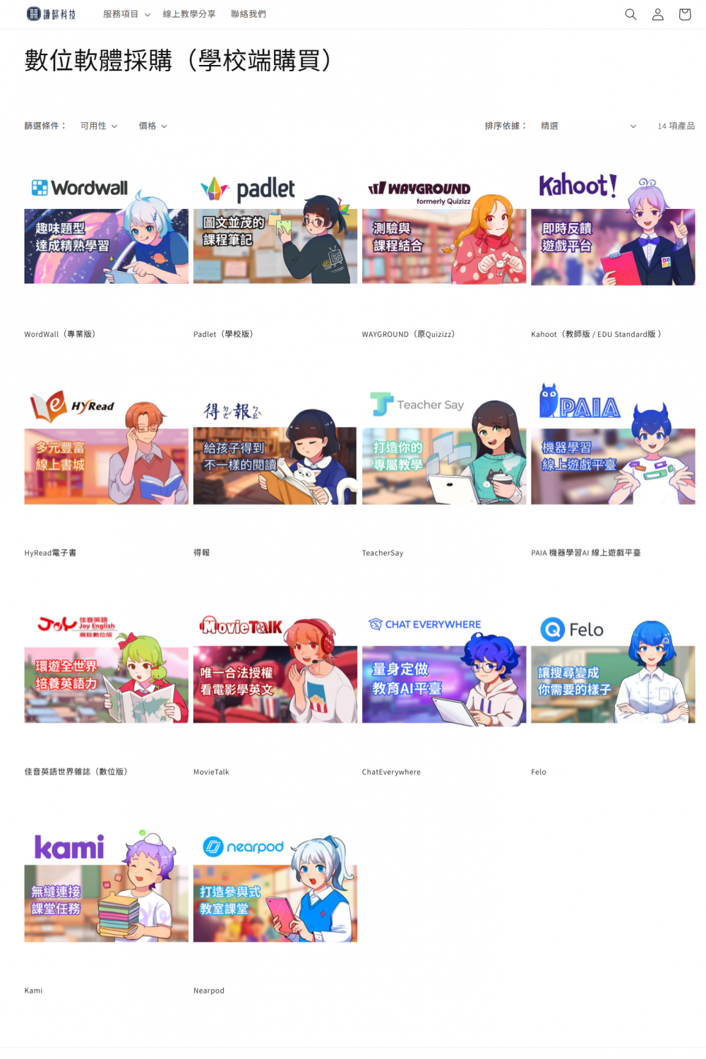 服務項目包含「教育推廣」、「銷售代理」、「內容、平台開發」。