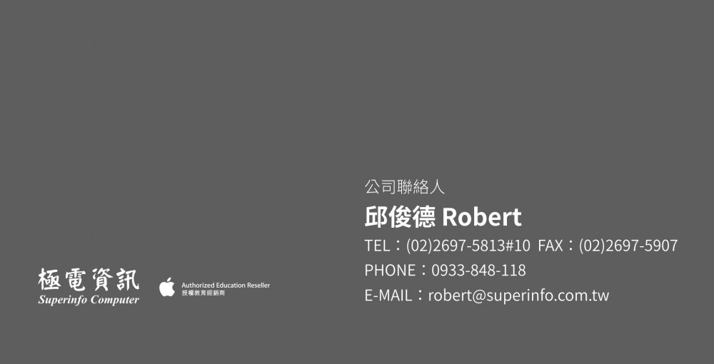 極電資訊有限公司為 Apple 授權教育經銷商,創立於 1990 年,銷售 Apple 電腦、平板電腦、行動裝置與 Apple 原廠配件,除此之外,也提供學校、公家機關的軟硬體採買與安裝,包含工作站、伺服器、儲存裝置、數位機背等相關服務。