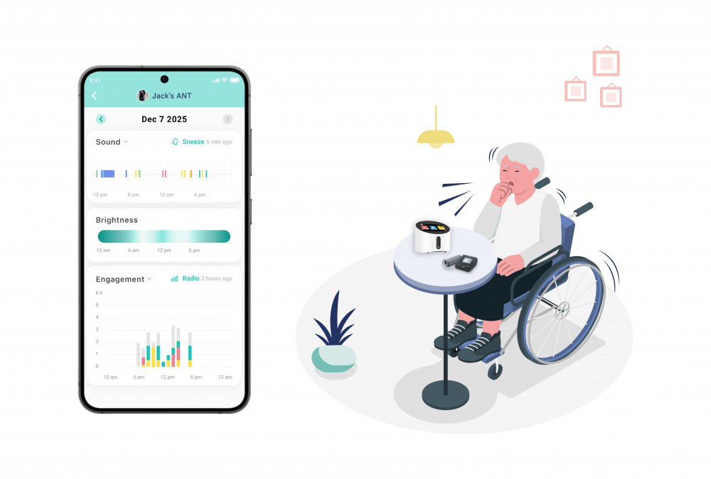 每天的健康狀況自動記錄,咳嗽、跌倒或半夜起身都能即時提醒家人;