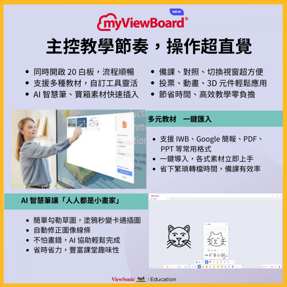 有效的學習不該只是單向傳授!教師可以運用 myViewBoard 輕鬆建立一個雙向互動的學習環境,讓學生可以透過個人裝置積極參與學習,實現生生有平板,課堂高互動!