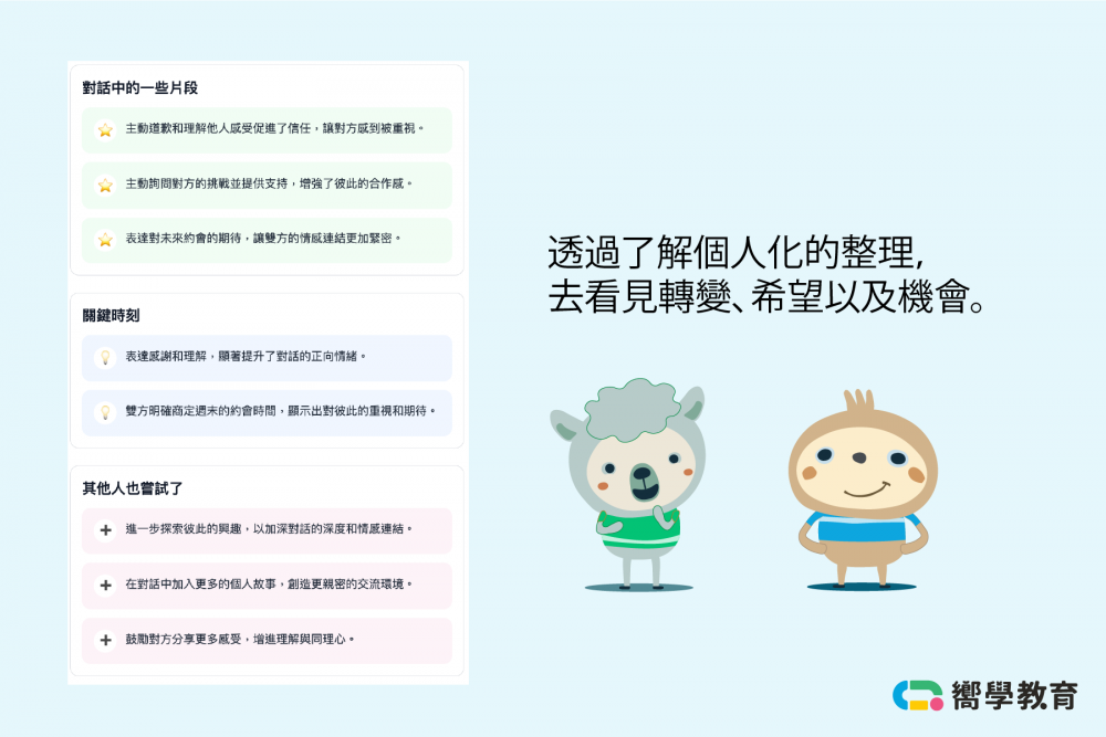 嚮學是以知識內容為核心,將學習情境生活化的教育科技團隊。我們致力於社會情緒學習領域(SEL),設計陪伴人們「練習說出一段話」的對話體驗。透過同理心與情境式引導,讓表達不再困難,讓溝通更有連結。