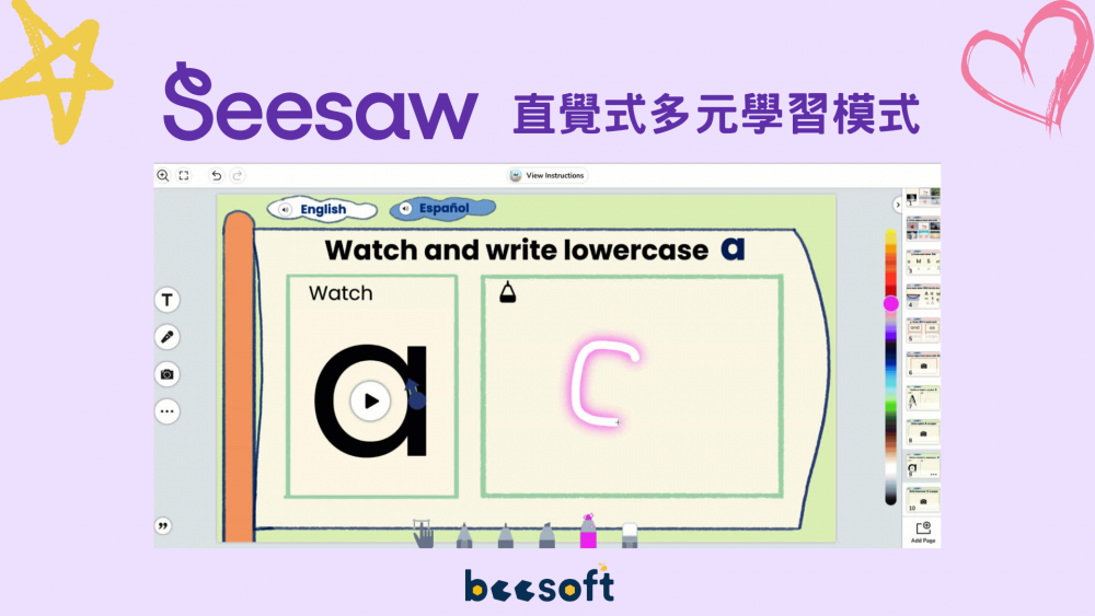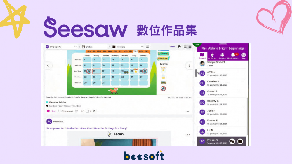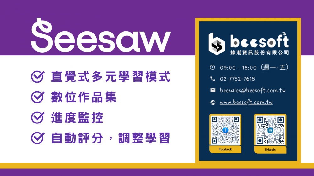 Seesaw 是一個教育科技平台,提供教師、學生和家長之間的互動和學習工具。