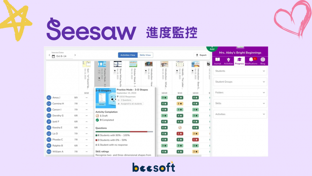 ✅ 教師評估和反饋:能查看學生的作品和進度,給予即時的評估和反饋。