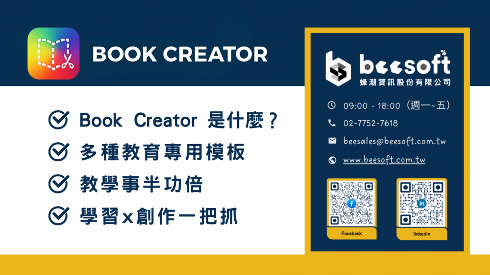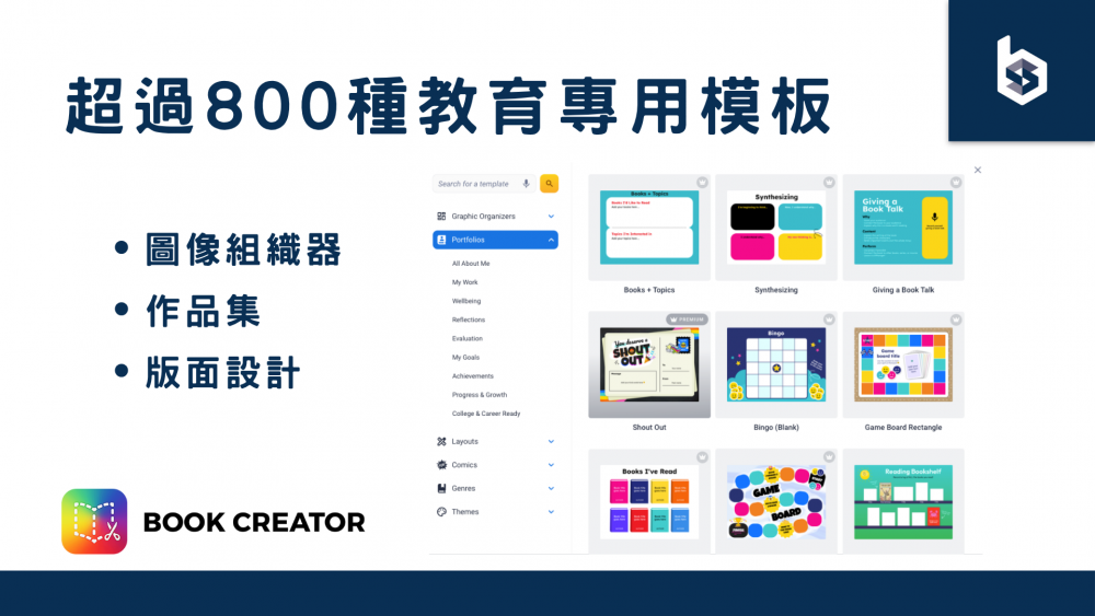 數位創作工具已成為教師和學生不可或缺的學習夥伴。Beesoft 蜂潮資訊榮幸宣布成為 Book Creator 在台灣的首家代理商,致力於為教育機構與教學創作者提供強大的數位出版平台。超過 800 種頁面模板,專為教育設計。功能如下:
