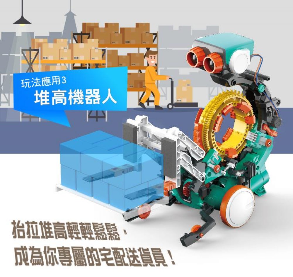 畫圖、堆高、踢球、投籃、夾爪機一盒變化