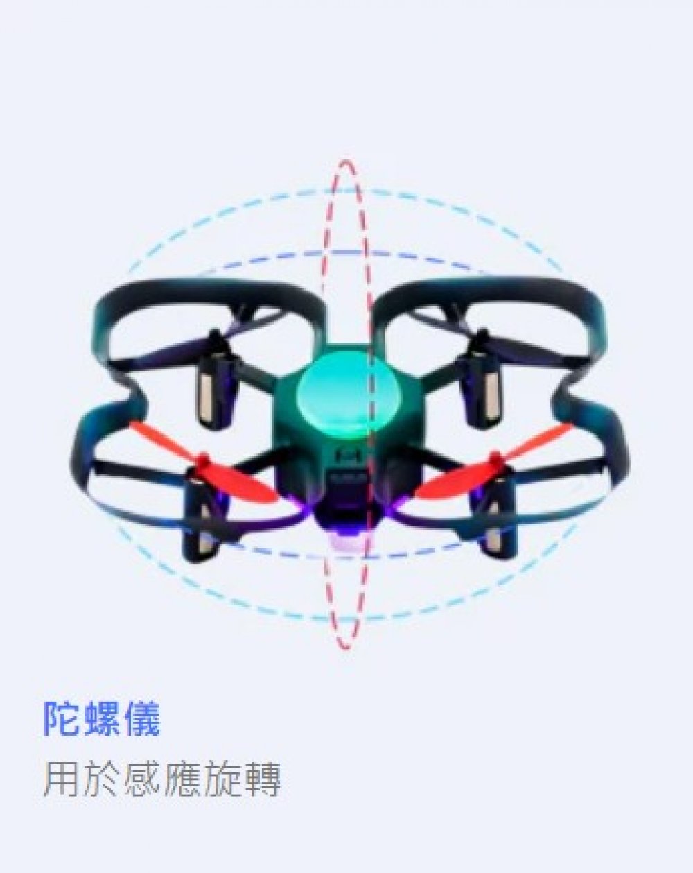 搭載七個感測器:加速度計、陀螺儀、氣壓計、光流、避障、色彩,皆適用於編程!