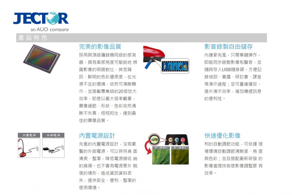 JECTOR於2001年開始致力於推展數位教學輔助硬體設備,一路由資訊融入教學至前瞻智慧教室建置,是台灣在地的教育品牌。2021年5月5日JECTOR成為友達集團一份子,以開創視界實現顯示大未來為目標,由台灣出發成為全球品牌。
