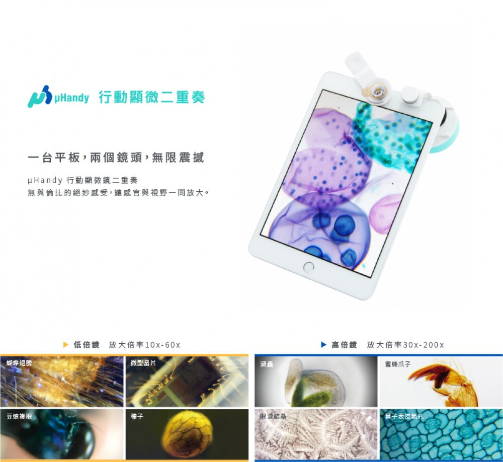 uHandy 將觀察面向拓展得更寬,僅需一支手機,便能將厘米到微米一次看盡,讓手機顯微鏡不再只是玩具,更是 STEAM 素養教育中的推薦教具。