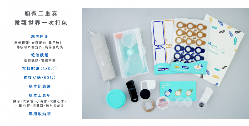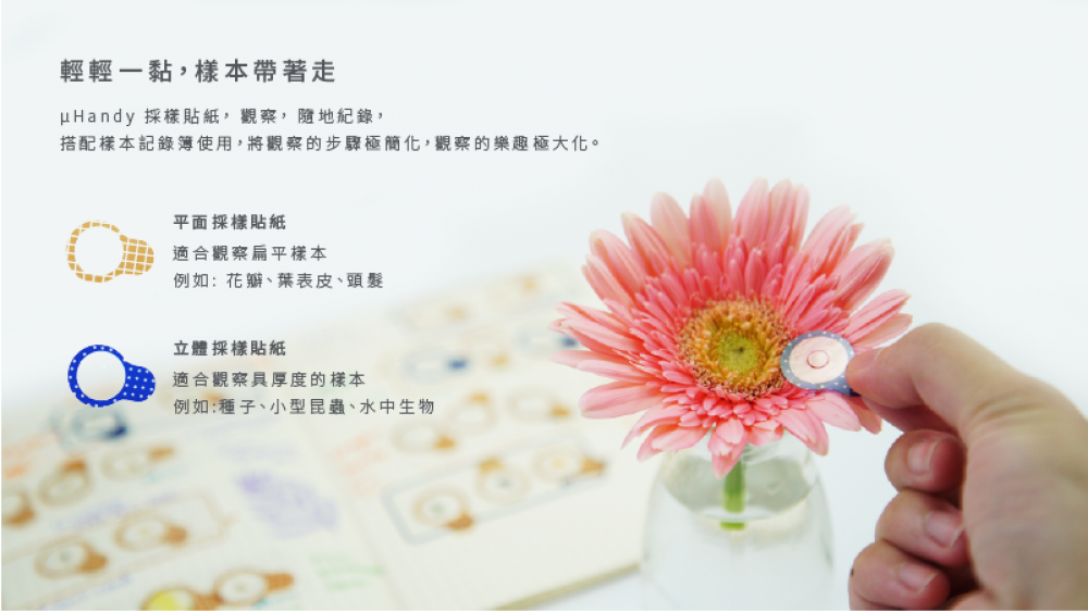 一組體積超小、攜帶輕便的手機顯微鏡,利用貼紙採樣,就像擁有超能力,瞬間走入全新的世界!STEAM 教育、親子共學或是藝術創作靈感,uHandy 不是你尋常可見的科普玩具,而是發掘隱藏驚喜的強大工具。