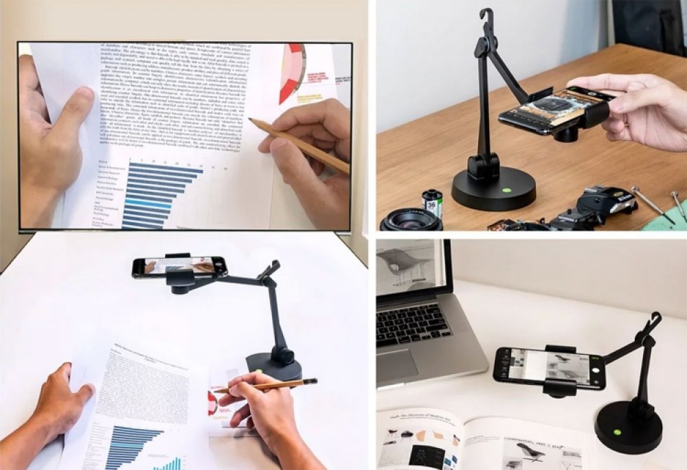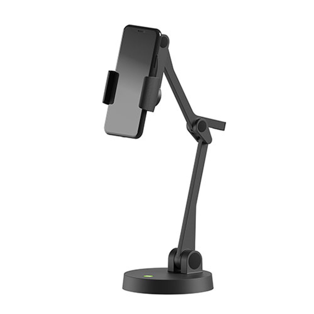 • 360度旋轉的鏡頭底座、堅固的多關節懸臂,可以自由的快速調節手機高度和觀看角度