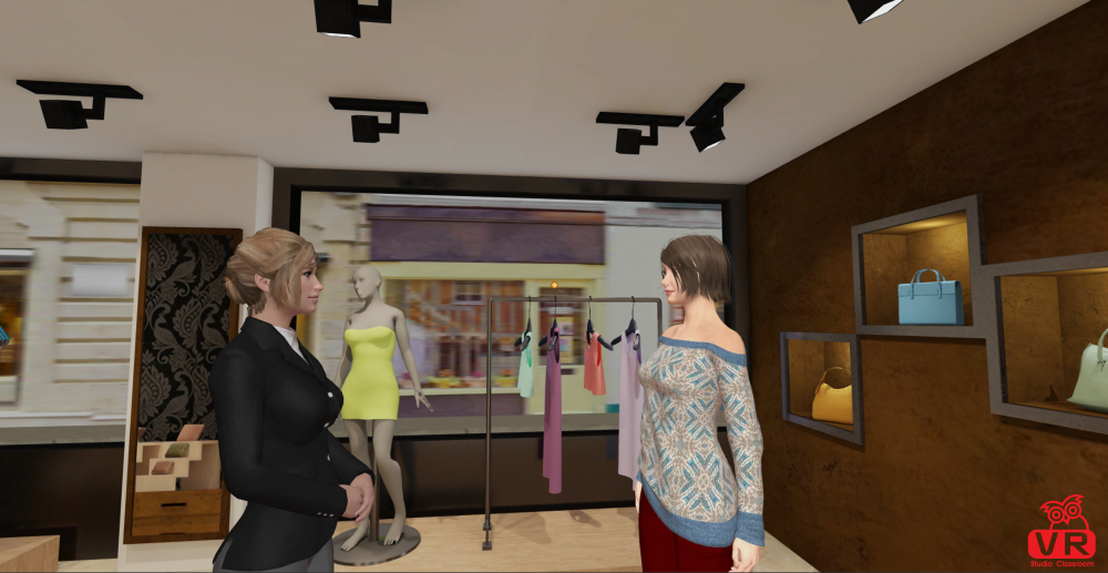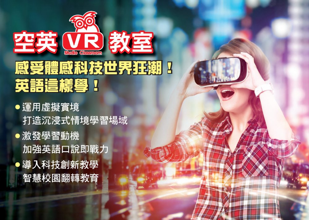 經由VR虛擬情境,讓學生自然說英語,持續答對,像闖關遊戲般會置換場景,還會顯示Perfect作為鼓勵,學生有了成就感,也提升學習英文的興致。將空英VR教室導入英語課,先讓學生輔以觀光購物的VR內容作單機演練,使用完VR同學們,兩兩成組共同創作該堂VR內容中的對話衍生,彼此交互練習,老師會發給同學國外商品目錄,作為當下實作參考,如此以智慧學習情境融入資訊科技,激發學生多元思考,也意外提高學生對英文的興趣。