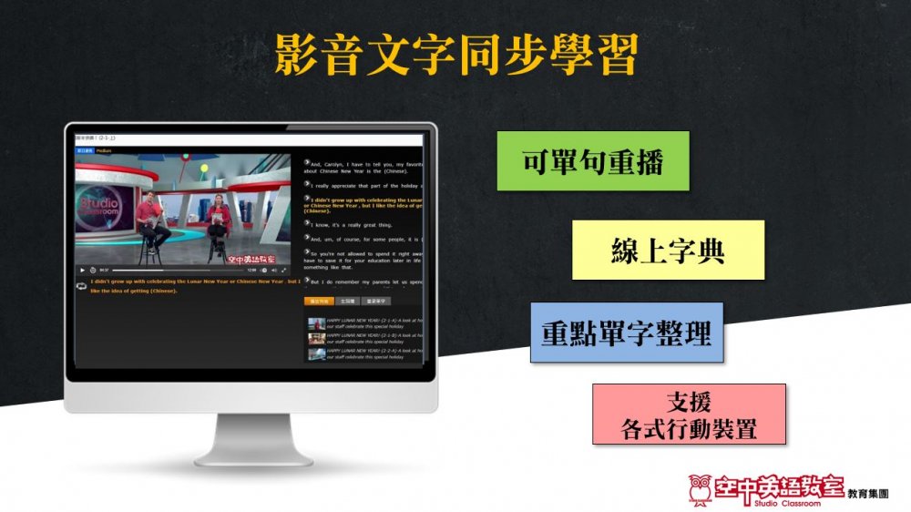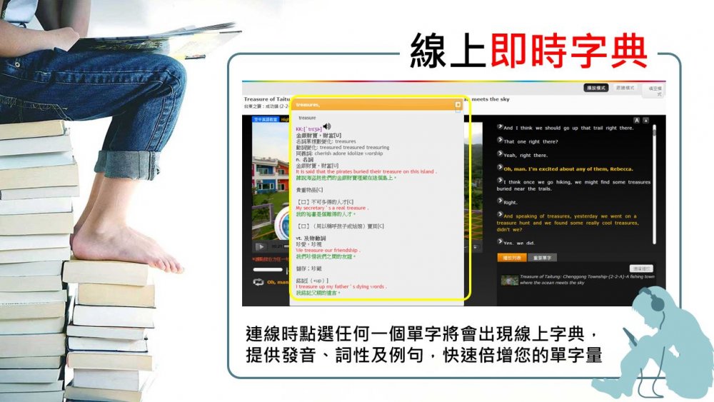 影音文字同步搭配線上字典,聽力閱讀大提升
