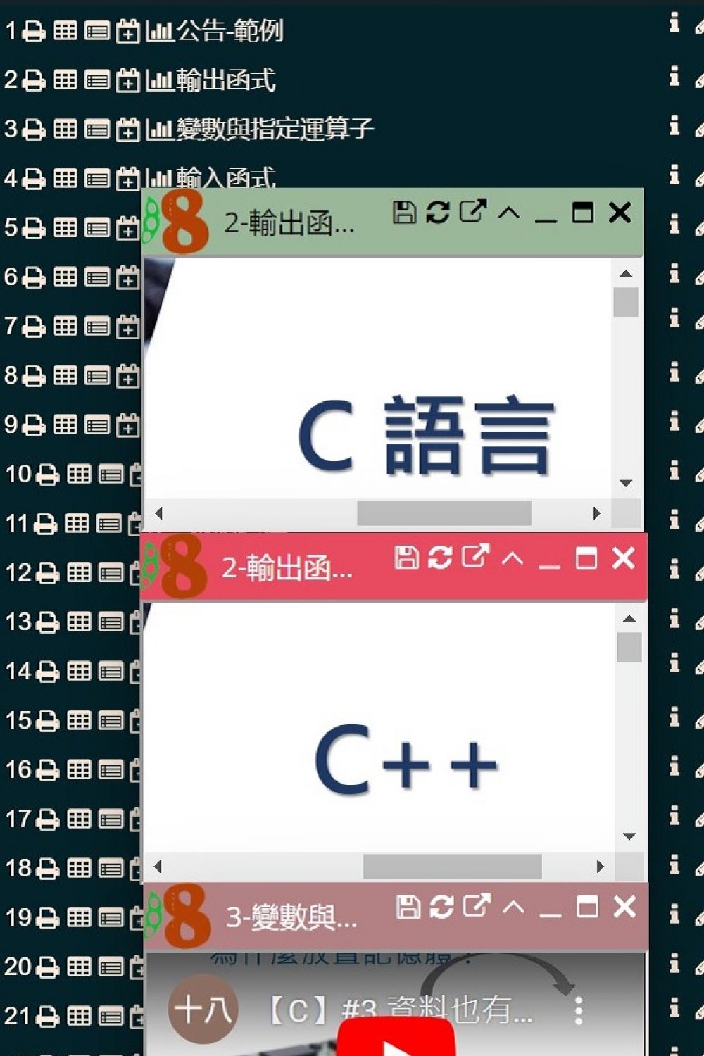 拓展式學習地圖,內建合適國中、高中與大學的程式設計教材,包含C、C++與Python等,部分教材提供與教材,教師可以在此基礎發展屬於自己的學習地圖。