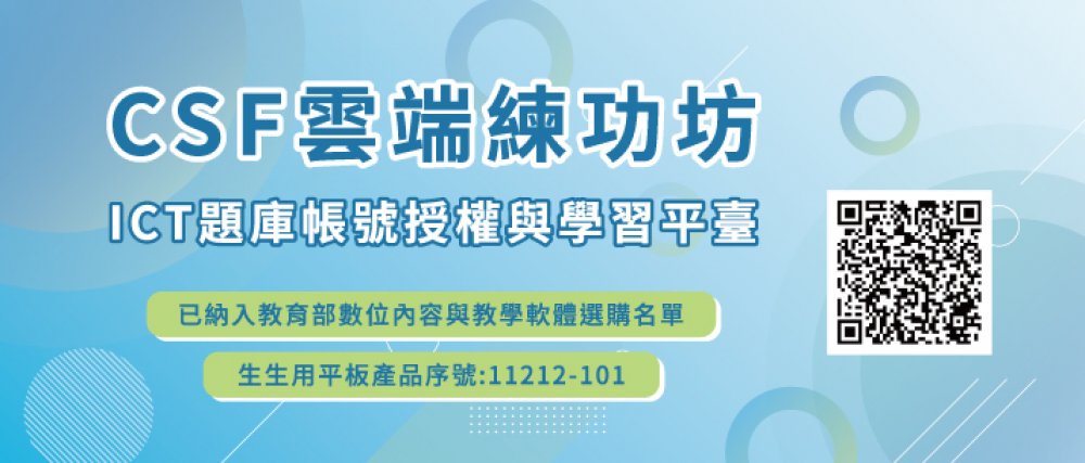 CSF雲端練功坊含括TQC/TQC+/ITE/EEC/CWT等多項認證題庫,提供多元練習/結果分析/練習紀錄等多種功能,並搭配三種智能出題模式(隨機快速/特定領域/擬真模考)可準確評估練習者的實力,針對練習者的作答能力與答題狀況進行評估,『擬真模考練習』依照正式考試組卷比例進行模擬考試,精準分析預測,可快速增進練習者的實力,提高取證機率。