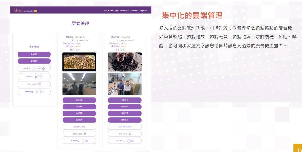 美型鏡面/落地移動/功能強大/一機多用/快速編輯/簡易上手/遠端管理/訊息推播/現場畫面/線上線下/離線播放/數位智慧/內容委製/年約包套