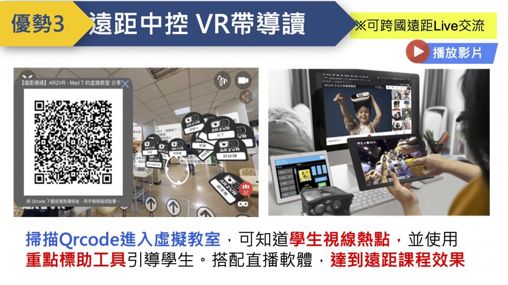 不受網域限制,支援跨縣市、跨國遠端VR導讀教學。