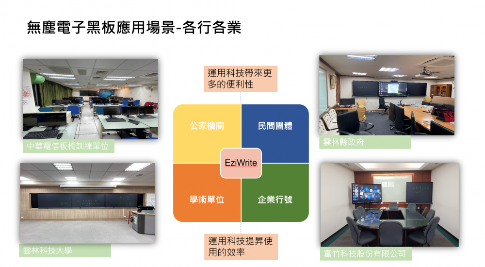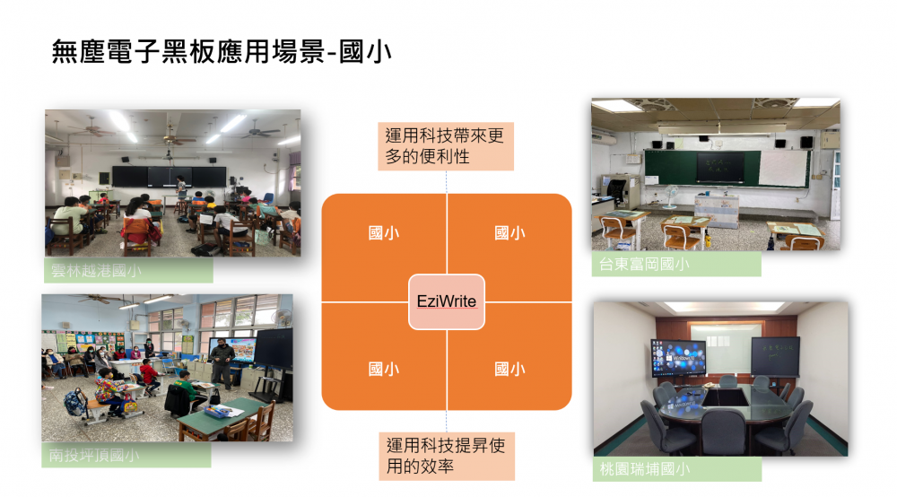 因現在大部份教室有教育白板,我們將傳統白板或是黑板換成我們的無塵電子黑板